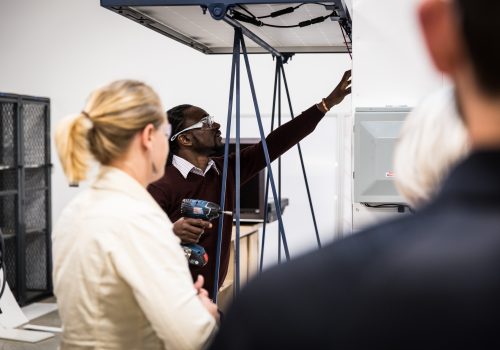 STEAM Studio hosts some of the Senior Design projects from the Mechatronics program. Students engaged in Senior Design projects at STEAM Studio work with tools, processes, and STEAM staff to design and fabricate their projects. Past projects include Mel Chin’s animatronic Wake, Navair’s remote controlled forklift which was specifically designed to navigate the tight quarters of aircraft carriers, and the NC Arboretum’s new animatronic animals in the Arboretum’s Winter Lights display.